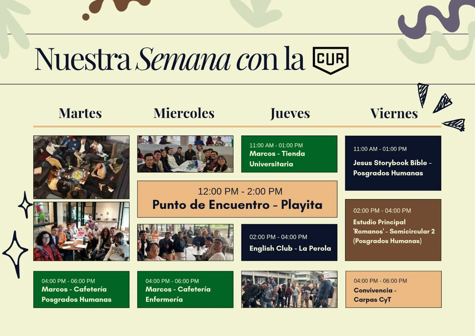 Somos un grupo estudiantil cristiano que lleva nueve años amando a la UNAL por medio de clubes de inglés, estudios bíblicos, y actividades de integración.